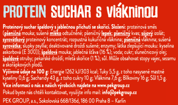 Proteinový suchar s vlákninou s jablečnou příchutí se skořicí 15 ks
