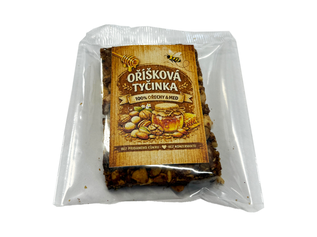 Info: tyčinky obsahují pouze pečlivě vybrané ořechy a med- tyčinky obsahují pouze pečlivě vybrané ořechy a med- neobsahují žádné konzervanty, přidané cukry, sirupy, náhražky ani dochucovadla a právě v této jednoduchosti a čistém složení spočívá jejich jedinečnost ve srovnání s běžnými výrobky na trhu- tyčinky jsou vhodné jako – zdravá svačina, rychlý zdroj energie během dne